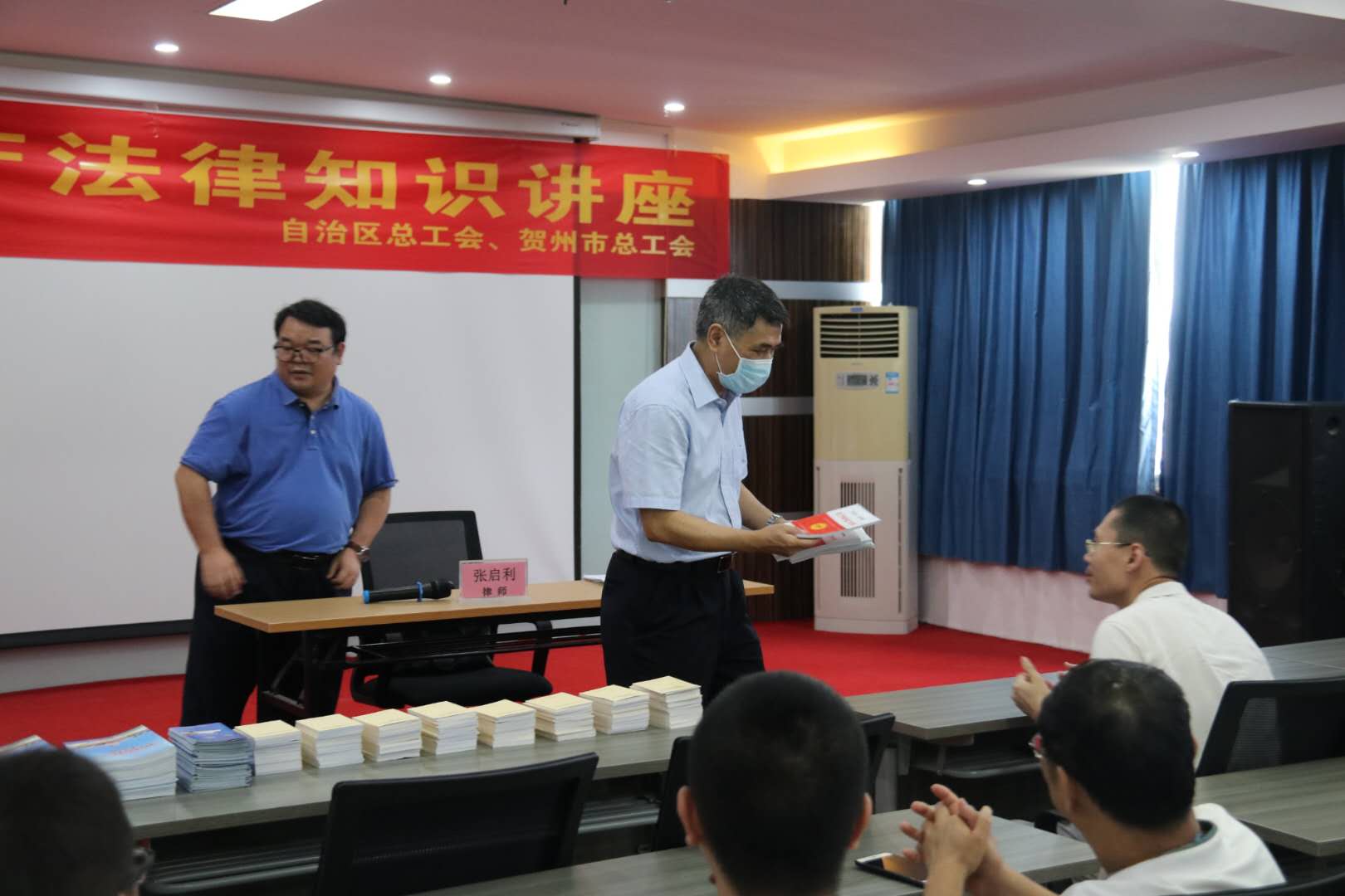 座談會(huì)結(jié)束后,元德新一行在復(fù)工復(fù)產(chǎn)法律講座現(xiàn)場(chǎng),向聽(tīng)課人員發(fā)放了《職工勞動(dòng)權(quán)益200問(wèn)》、《農(nóng)民工維權(quán)手冊(cè)》、《廣西壯族自治區(qū)企業(yè)工資集體協(xié)商條例》、《保障農(nóng)民工工資支付條例》和《復(fù)工復(fù)產(chǎn)法律宣傳材料》等資料。